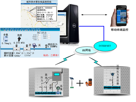 為保證供水工作的科學性,依靠現(xiàn)代計算機通信技術(shù)和傳感技術(shù),實施對供水管道的無人化遠程實時監(jiān)測,并且能夠自動傳輸?shù)缴厦娓骷壷鞴懿块T,監(jiān)測輸水管道、城市供水管道的壓力、流量信息;及時發(fā)現(xiàn)管網(wǎng)故障,提高維護效率、降低損失,保障輸水、供水質(zhì)量,達到科學預警,減少成本,提高效率的目的