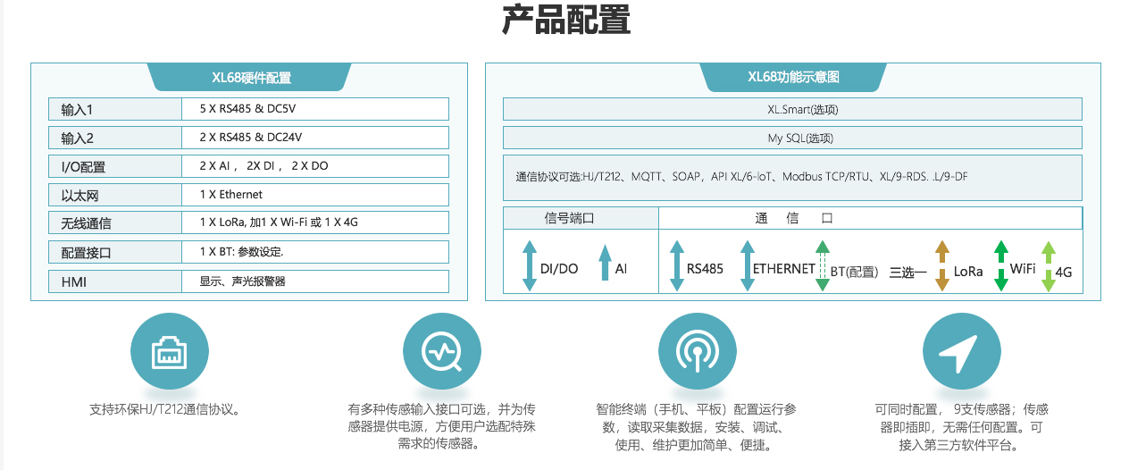 是高集成度的環境監測控制箱,監測環境參數,無線傳輸。支持環保HJ/T212通信協議。可同時配置, 9支傳感器;傳感器即插即,無需任何配置。有多種傳感輸入接口可選,并為傳感器提供電源,方便用戶選配特殊需求的傳感器。