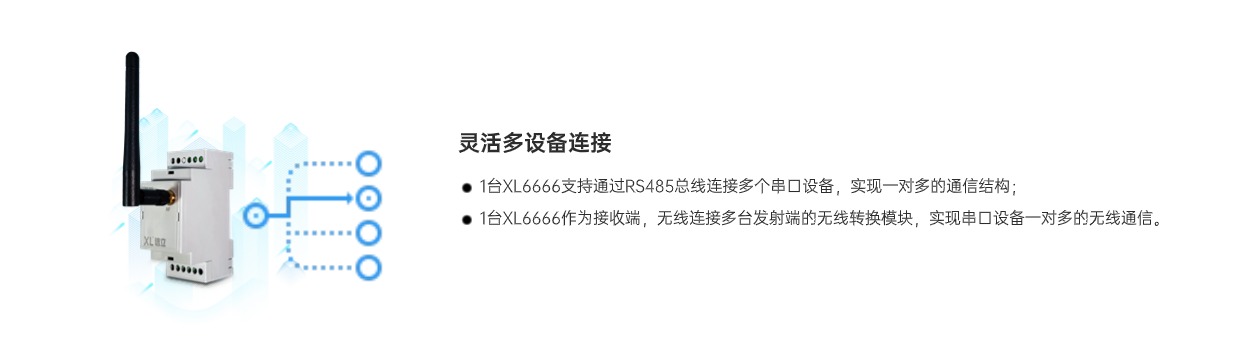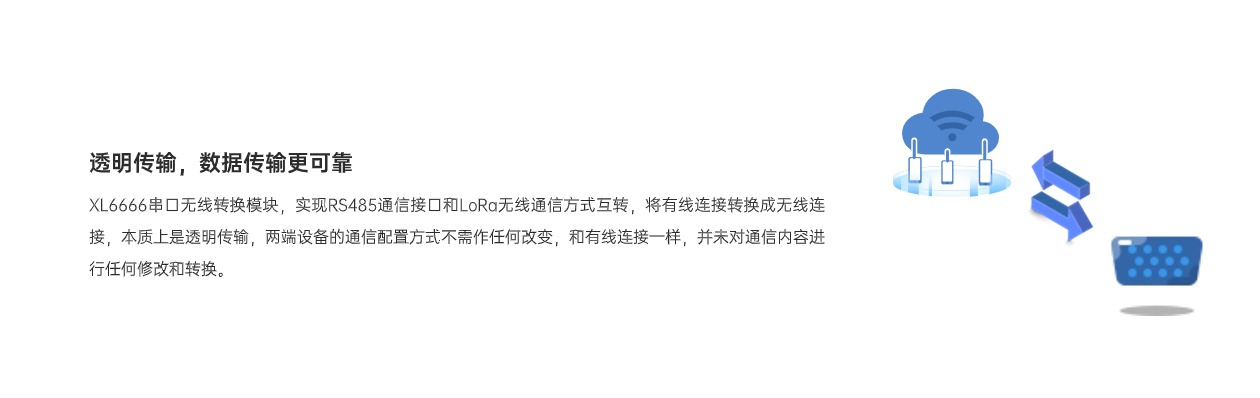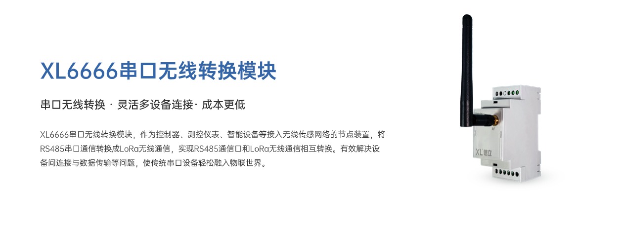 XL6666串口無線轉(zhuǎn)換模塊,作為控制器、測控儀表、智能設(shè)備等接入無線傳感網(wǎng)絡(luò)的節(jié)點裝置,將RS485串口通信轉(zhuǎn)換成LoRa無線通信,實現(xiàn)RS485通信口和LoRa無線通信相互轉(zhuǎn)換。有效解決設(shè)備間連接與數(shù)據(jù)傳輸?shù)葐栴},使傳統(tǒng)串口設(shè)備輕松融入物聯(lián)世界。