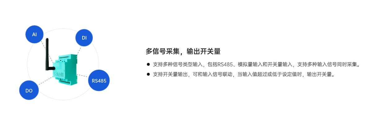 XL65采集模塊,用于監測點分散、數量少、供電不方便的場景。電池供電,變位、超限觸發功能,更適用于變送儀表信號、開關接點信號采集。