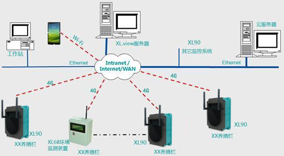 XL68智能環(huán)境監(jiān)測終端(裝置),采集空氣溫濕度、H?S、NH?、O?、CO?等等氣體濃度,光照、差壓等等信號;簡單應(yīng)用中選擇XL51溫濕度傳感器采集空氣溫濕度;XL60無線采集裝置控制養(yǎng)殖欄內(nèi)的參數(shù),起動風(fēng)機、加熱裝置、濕簾、照明,起動聲光報警器,采集用水量、用電量、水壓等等用戶關(guān)注的參數(shù)。