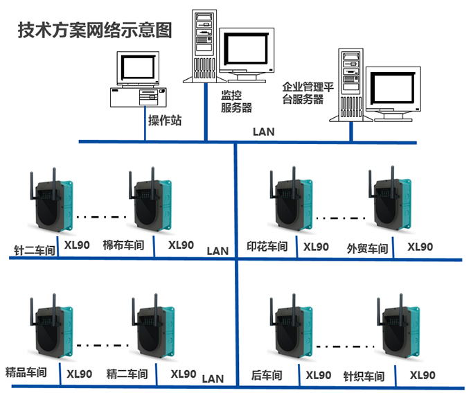 ?通信網(wǎng)絡(luò),由XL90物聯(lián)網(wǎng)關(guān),及企業(yè)LAN構(gòu)成
