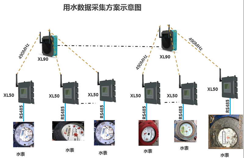 在每個(gè)用水量監(jiān)測(cè)點(diǎn),配置1套XL50無線采集器