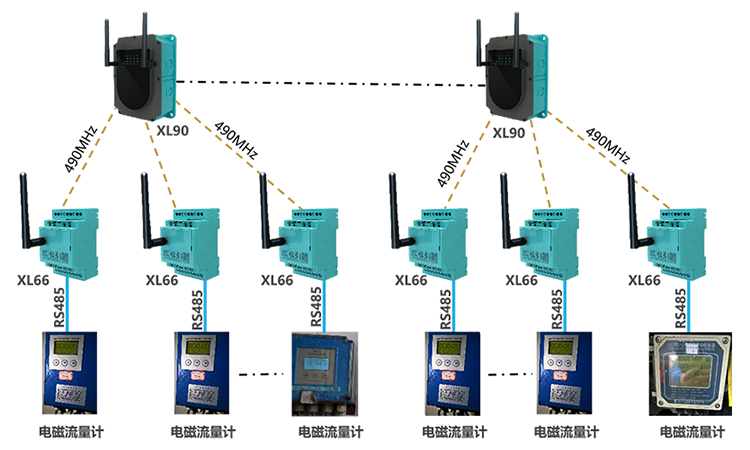 每個監(jiān)測點(diǎn)配置1臺XL66智能轉(zhuǎn)換器,從已安裝的電磁流量計(jì)讀取流量數(shù)據(jù)上傳至XL90物聯(lián)網(wǎng)關(guān);
