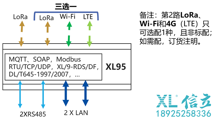 XL95標(biāo)配一路LoRa通信;可多配一路LoRa,無(wú)線讀取采集節(jié)點(diǎn)的數(shù)據(jù);