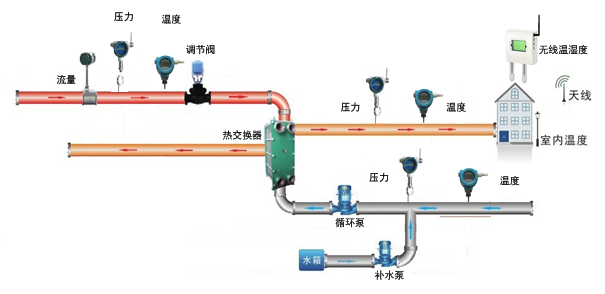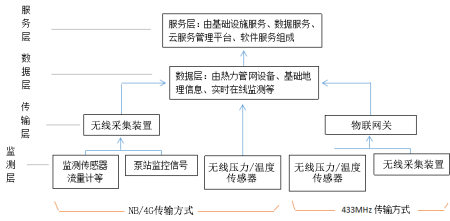 1、傳感器監(jiān)測層:主要有各種監(jiān)測傳感器組成,比如壓力、溫度、流量、地理與換熱站監(jiān)控設(shè)備組成。