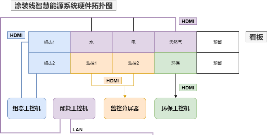 水、電、氣的消耗數(shù)據(jù),除在能源管理服務(wù)器上進行展示、打印外,還要在展示大廳的65英寸的顯示器上進行展示。展示要求示意圖如下