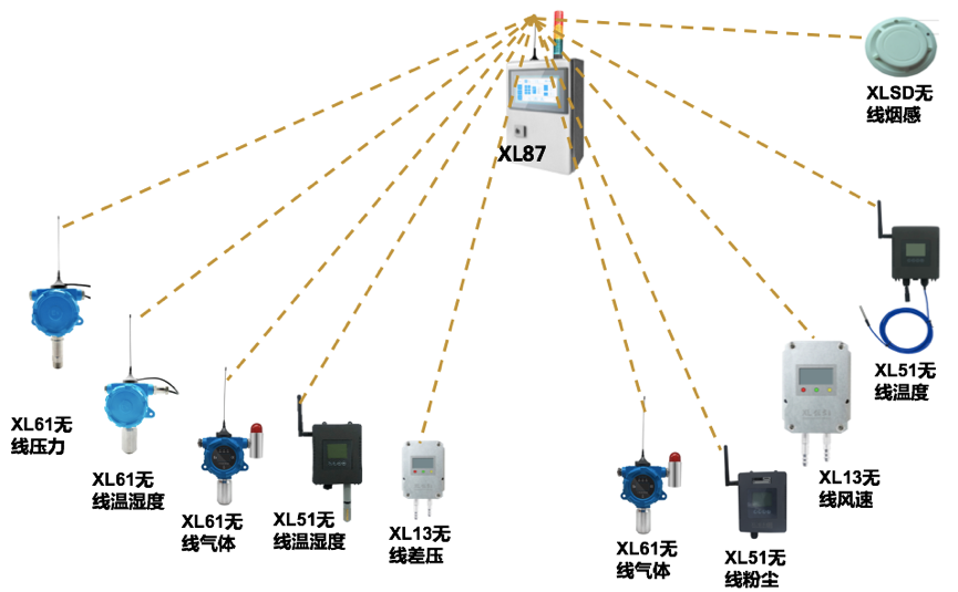壓力、壓差、煙霧傳感器,溫度、可燃氣體、有毒有害氣體、粉塵、風速、溫濕度、壓縮空氣含水量,等參數,都配置無線傳感器進行采集;
