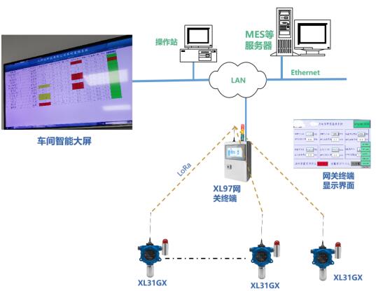 l XL31GX智能氣體檢測(cè)儀,通過LoRa接入網(wǎng)關(guān)終端,網(wǎng)關(guān)終端通過4G接入云平臺(tái)。