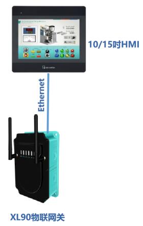 配置1臺XL90物聯(lián)網(wǎng)關(guān),作為系統(tǒng)通信核心,無線連接現(xiàn)場控制設(shè)備,通過以太網(wǎng)連接觸摸屏。