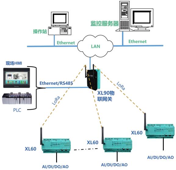 XL90或XL95物聯(lián)網(wǎng)關作為無線接收端,進行協(xié)議轉換,數(shù)據(jù)轉發(fā)。