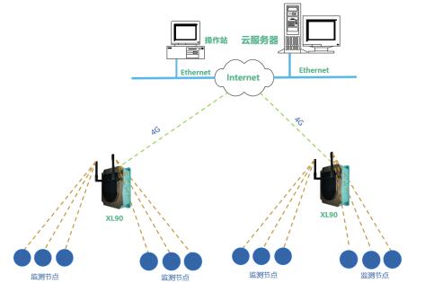解決方案:XL90物聯(lián)網(wǎng)關(guān)無線讀取監(jiān)測節(jié)點的數(shù)據(jù),進行處理、協(xié)議轉(zhuǎn)換,采用4G通信方式將數(shù)據(jù)直接推送至云平臺。